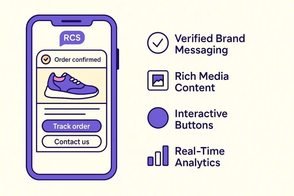 RCS (Rich Communication Services) is the next-generation upgrade to SMS. It allows businesses to send: